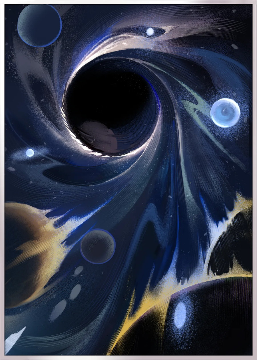 「彼はその空洞を見つめていた。それは、すべての終焉に高く昇る漆黒の太陽のようで、すべての疑問に答える口のよう——その口は言う。
