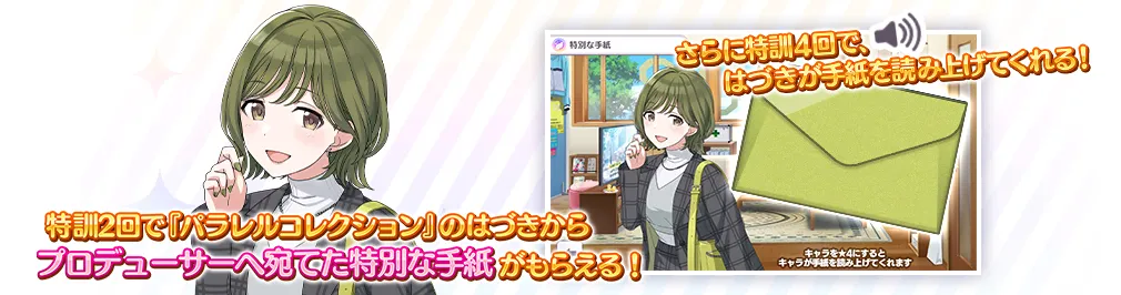 また、【あなた次第】七草 はづきを4回特訓すると、はづきが手紙を読み上げてくれます!