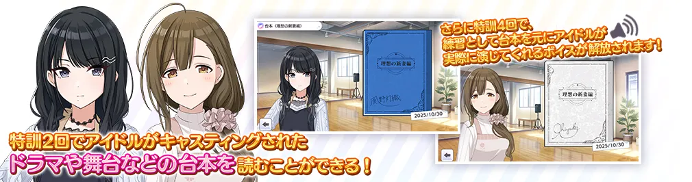 4回特訓すると練習として台本を元にアイドルが実際に演じてくれるボイスが解放されます!