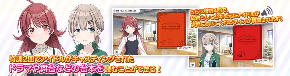 4回特訓すると練習として台本を元にアイドルが実際に演じてくれるボイスが解放されます!