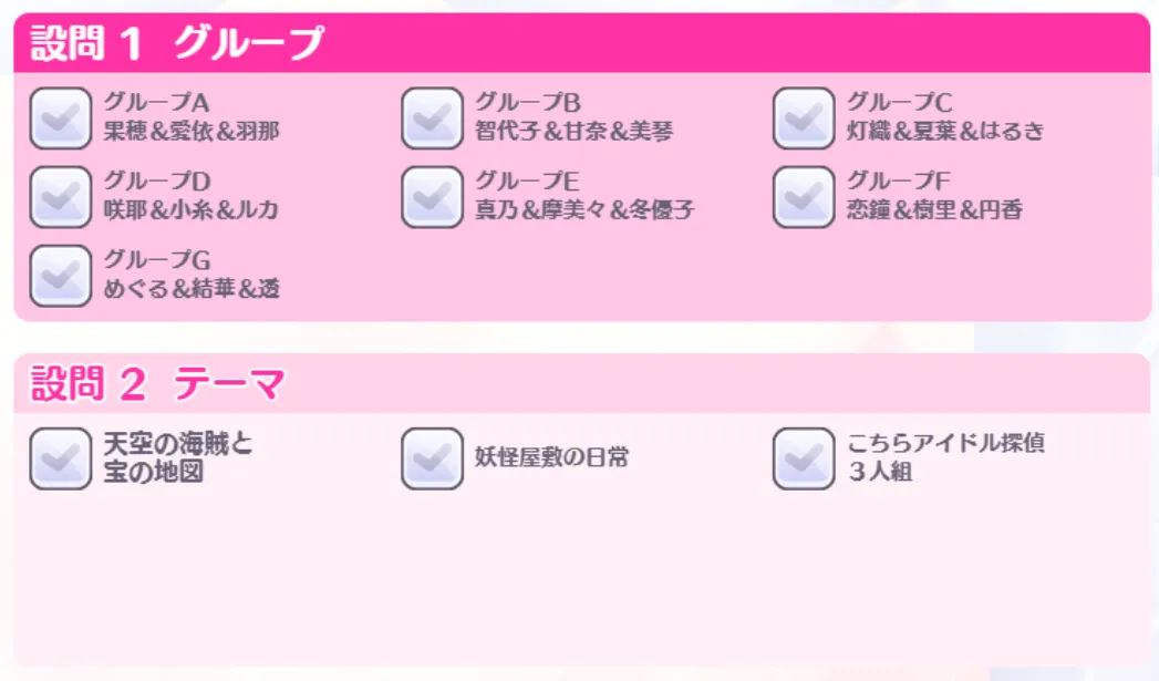 そもそも今回のグループが次回も同じになるとは限らないので見たい組み合わせがあったら投票しておく方が吉