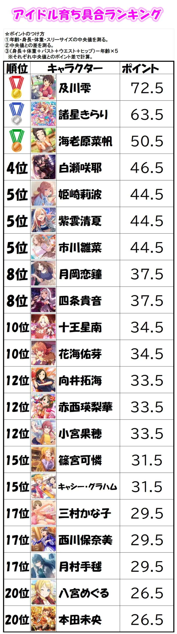 どっちかと言うと年齢で考えてどれくらい成長してるかのランキング