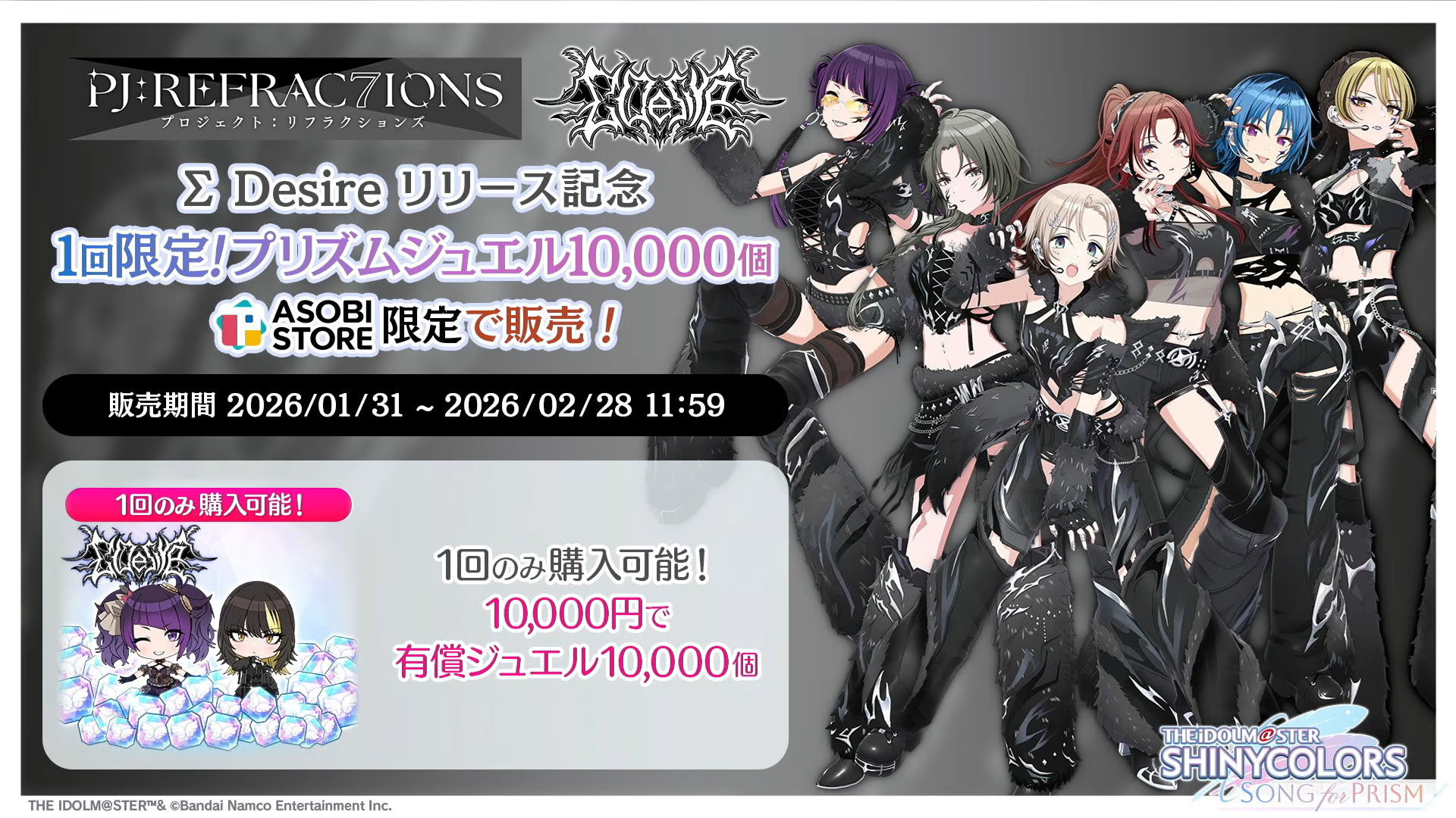 Σ Desireリリース記念としてアソビストアにて1回限定で有償プリズムジュエル10,000個が1万円で販売されます。