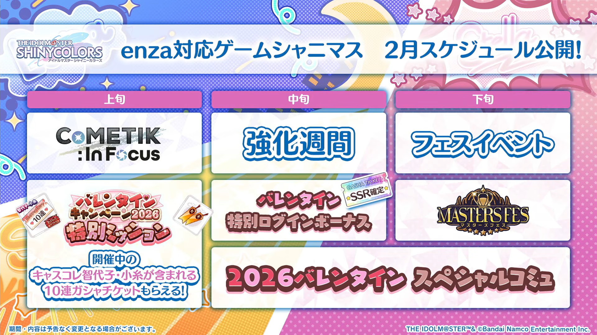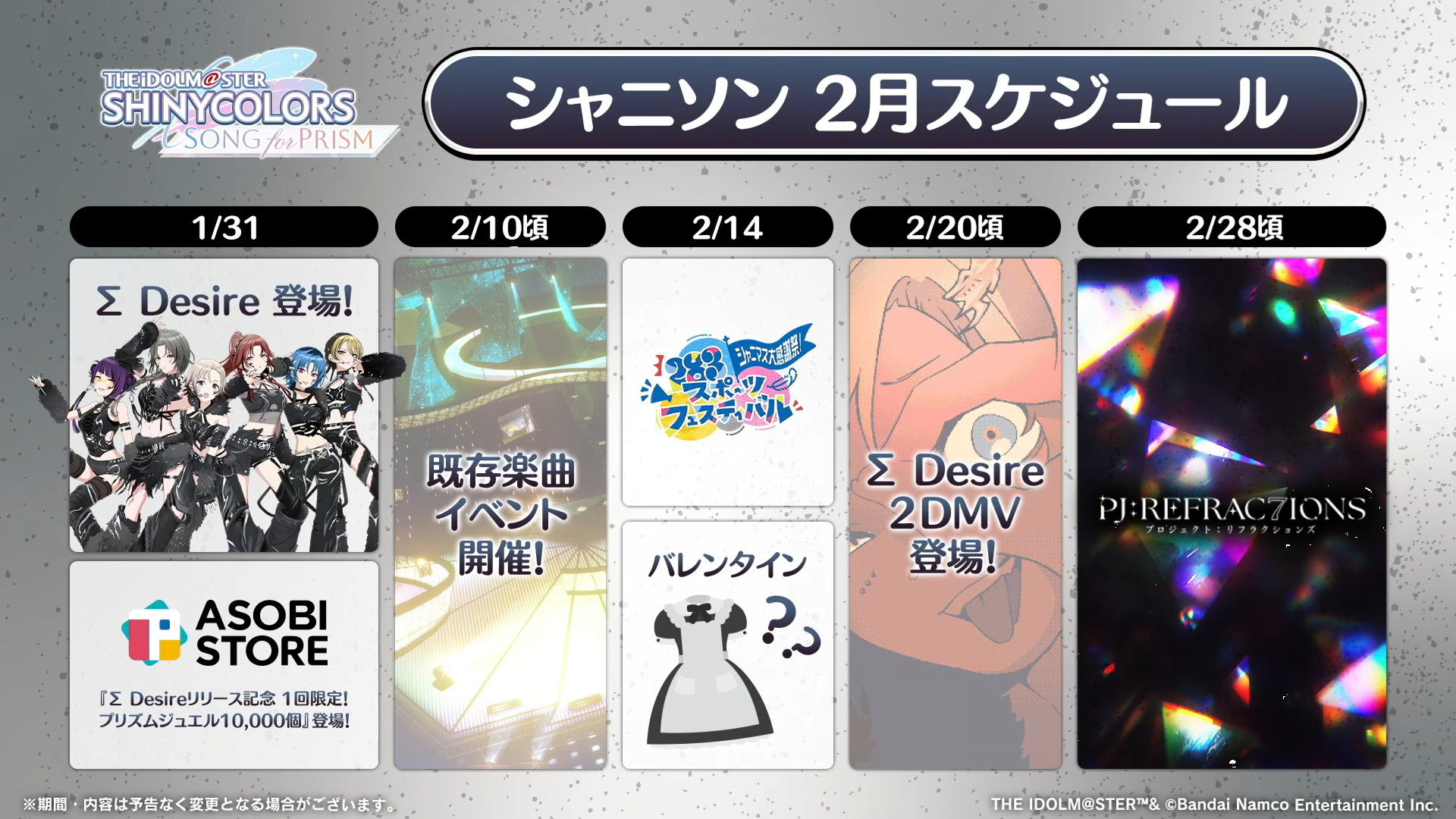 シャニマスの2月のスケジュールはこちら。