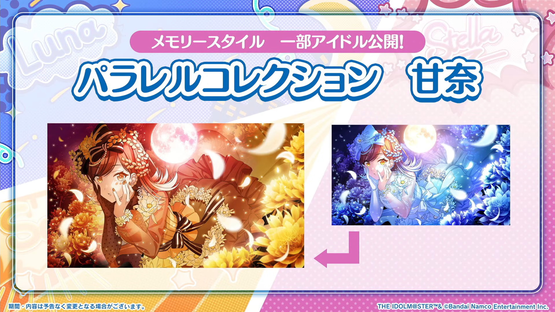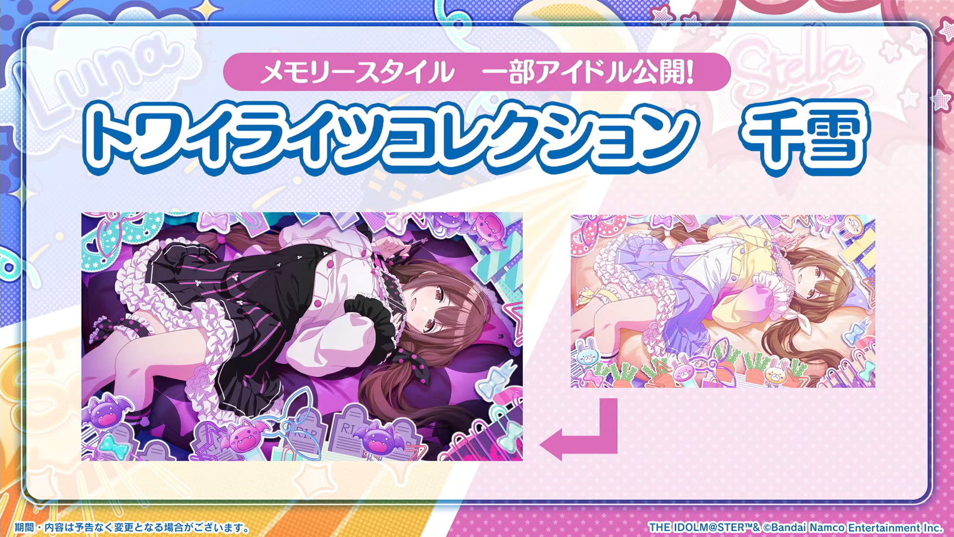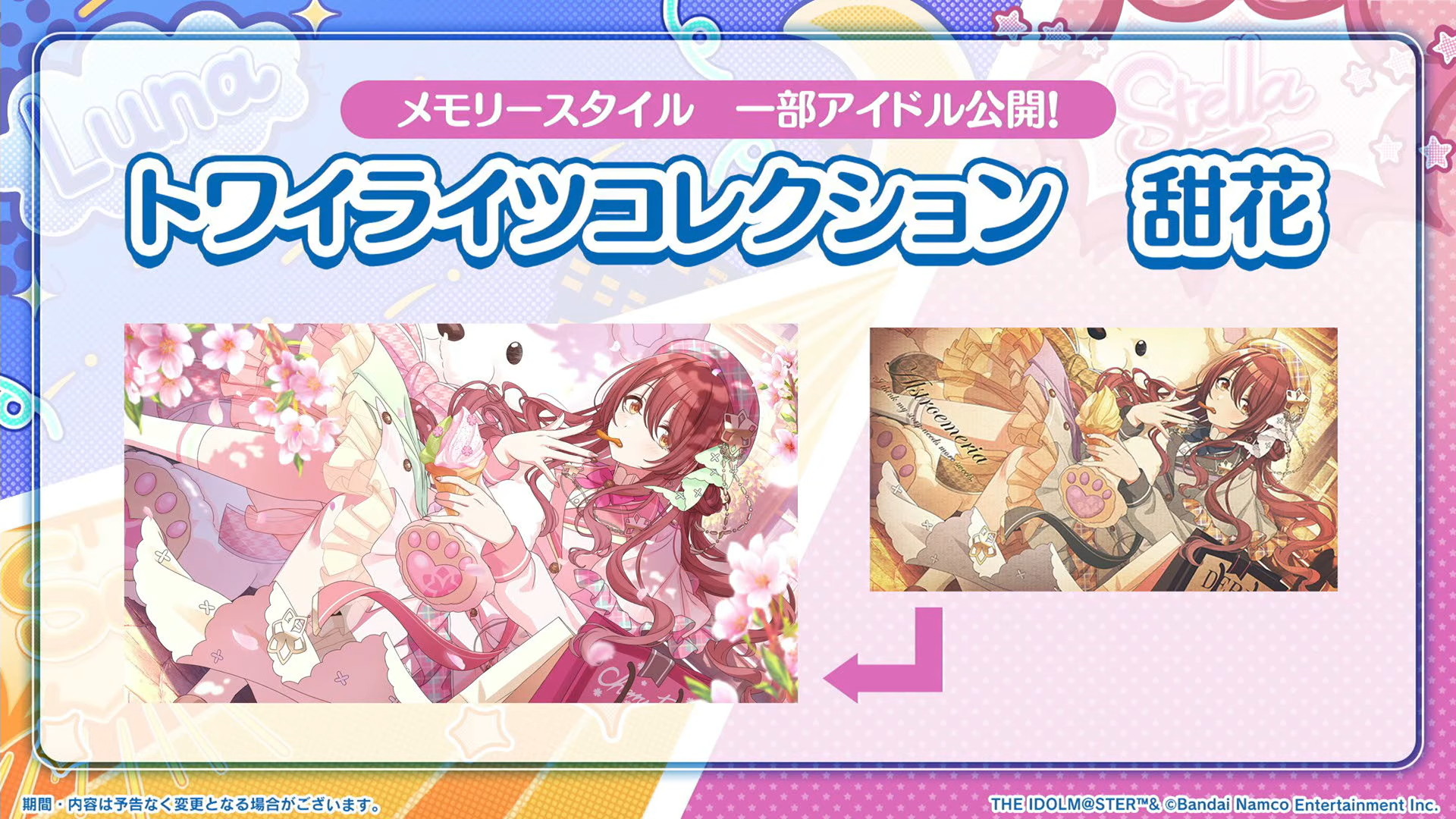パラコレ甘奈、トワコレ甜花&千雪のメモリースタイルのイラストも公開されました。
