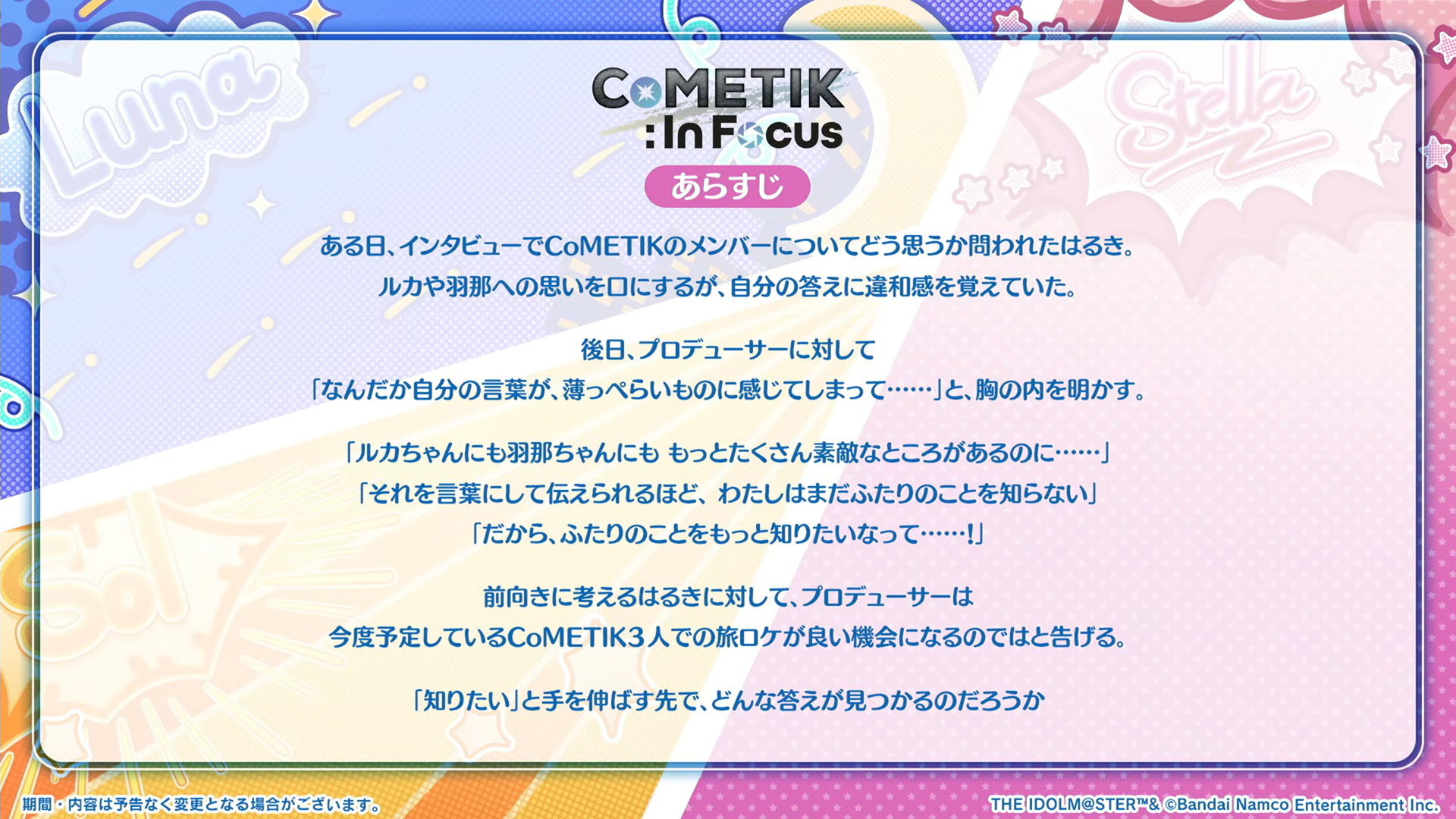 1月30日よりコメティックのシナリオイベント「CoMETIK:In Focus」が開催されます。