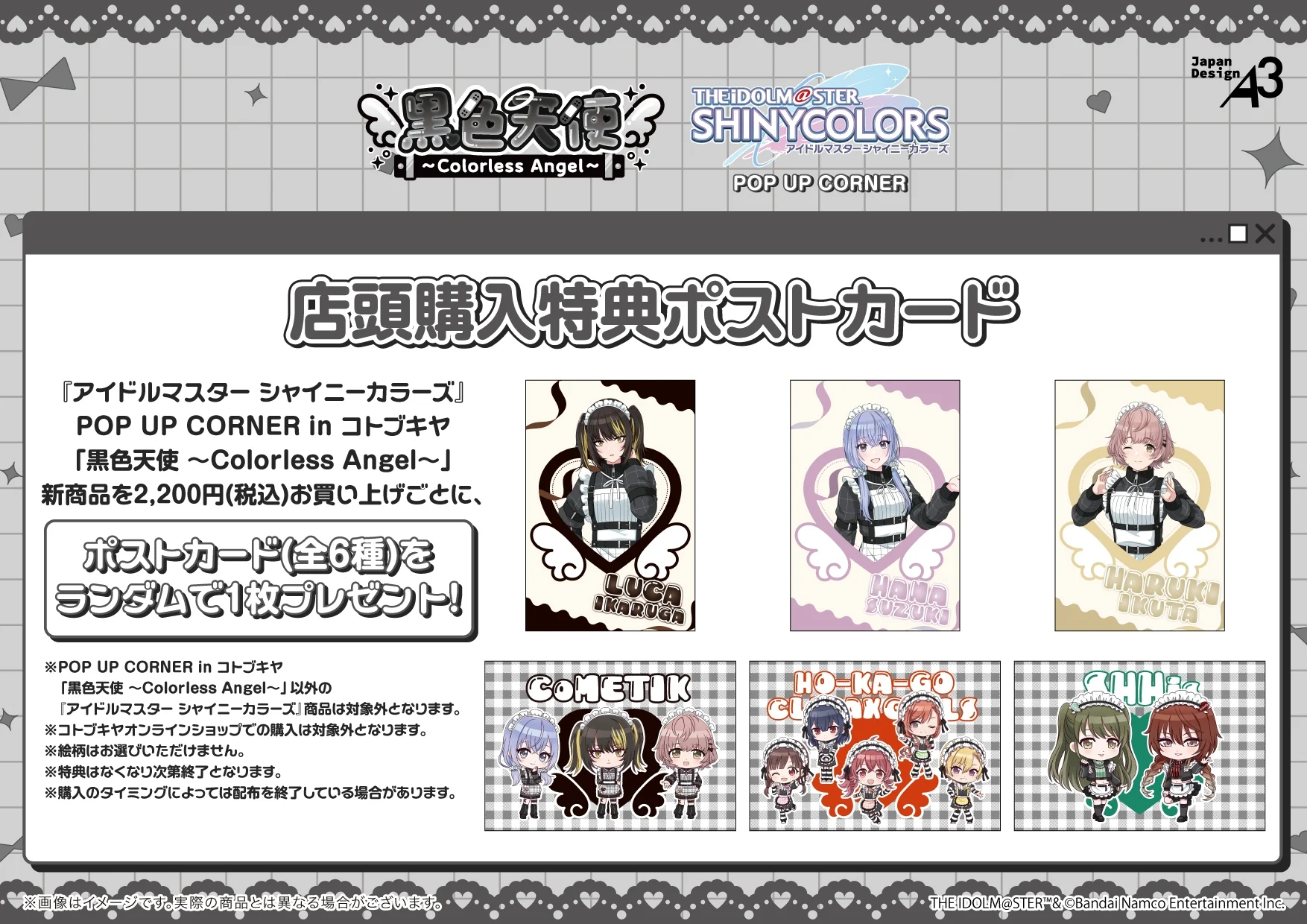 【シャニマス】POP UP CORNER in コトブキヤ「黒色天使 ~Colorless Angel~」が開催決定! #シャニマス #シャイニーカラーズ #idolmaster https://t.co/Wu9cfyUIet