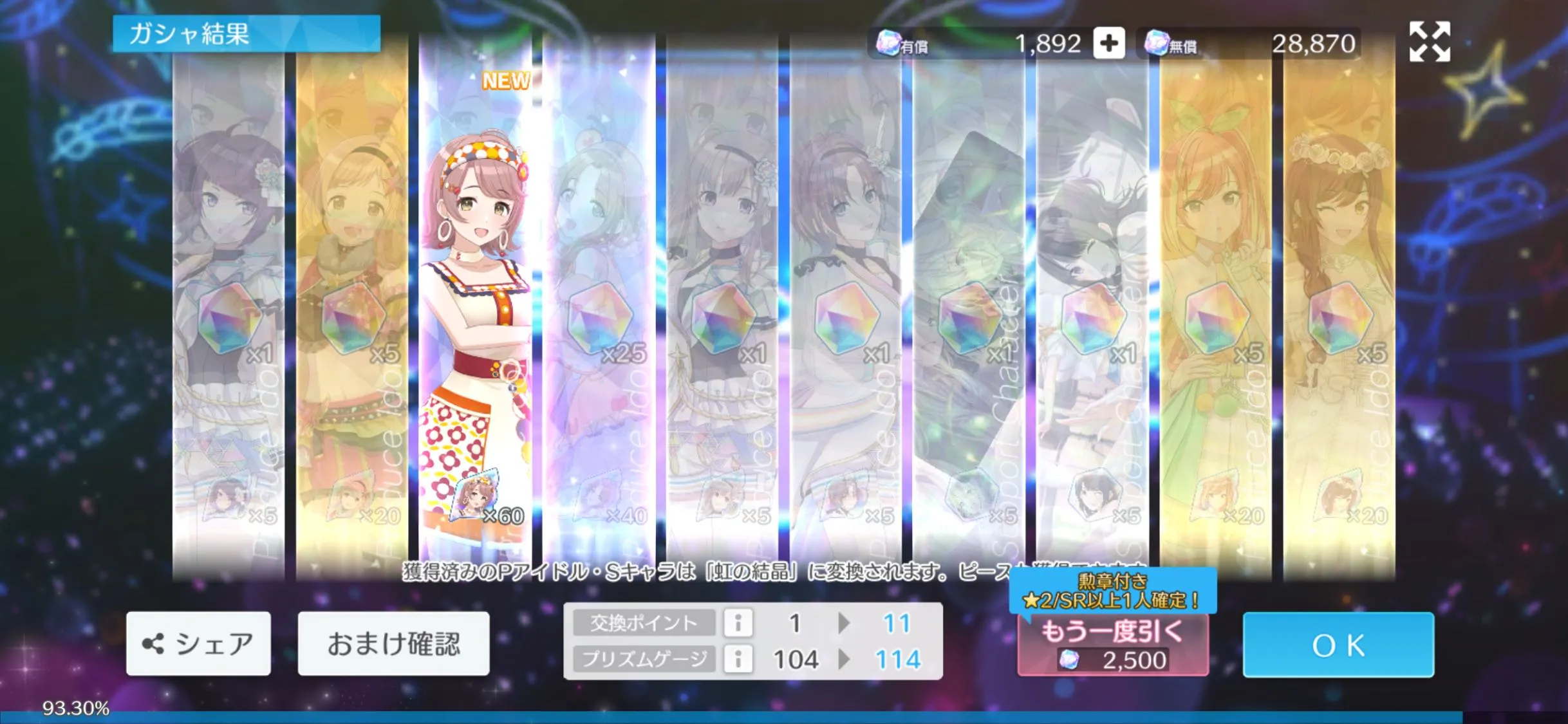 リフラクションズで初めて無償でそろったわ、たりラ