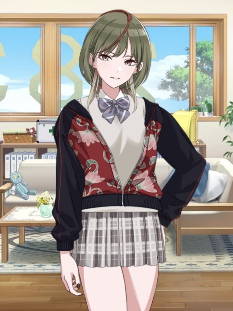リアル等身になったらなお変だなこの制服+オシャレブラウスの組み合わせ…