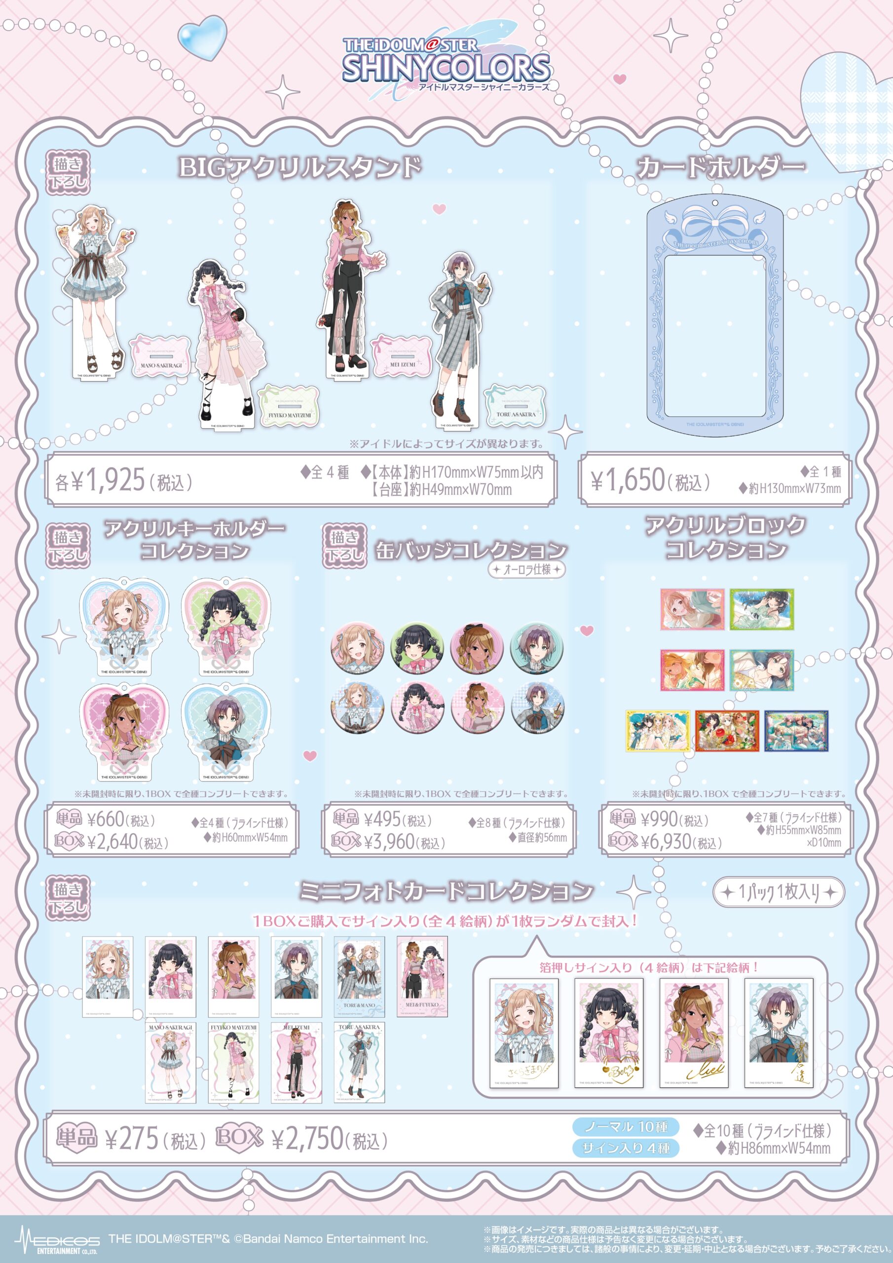 『アイドルマスター シャイニーカラーズ』POP UP SHOPで販売した商品はMEDICOS ONLINE SHOPにて事後通販を予定しております。