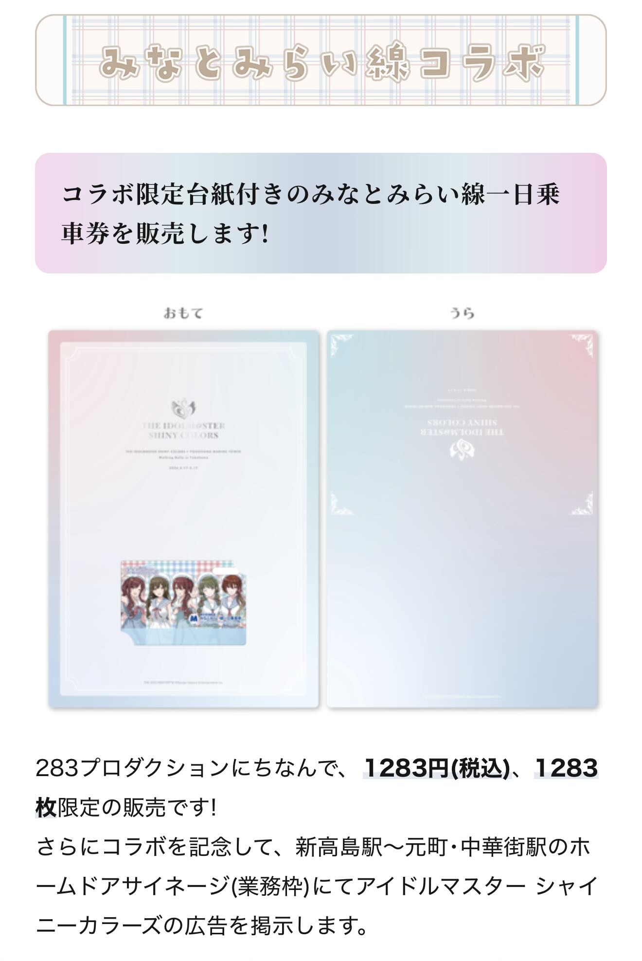【シャニマス】横浜マリンタワーコラボの詳細が公開!コラボ限定一日乗車券が欲しい人は早めに行こう