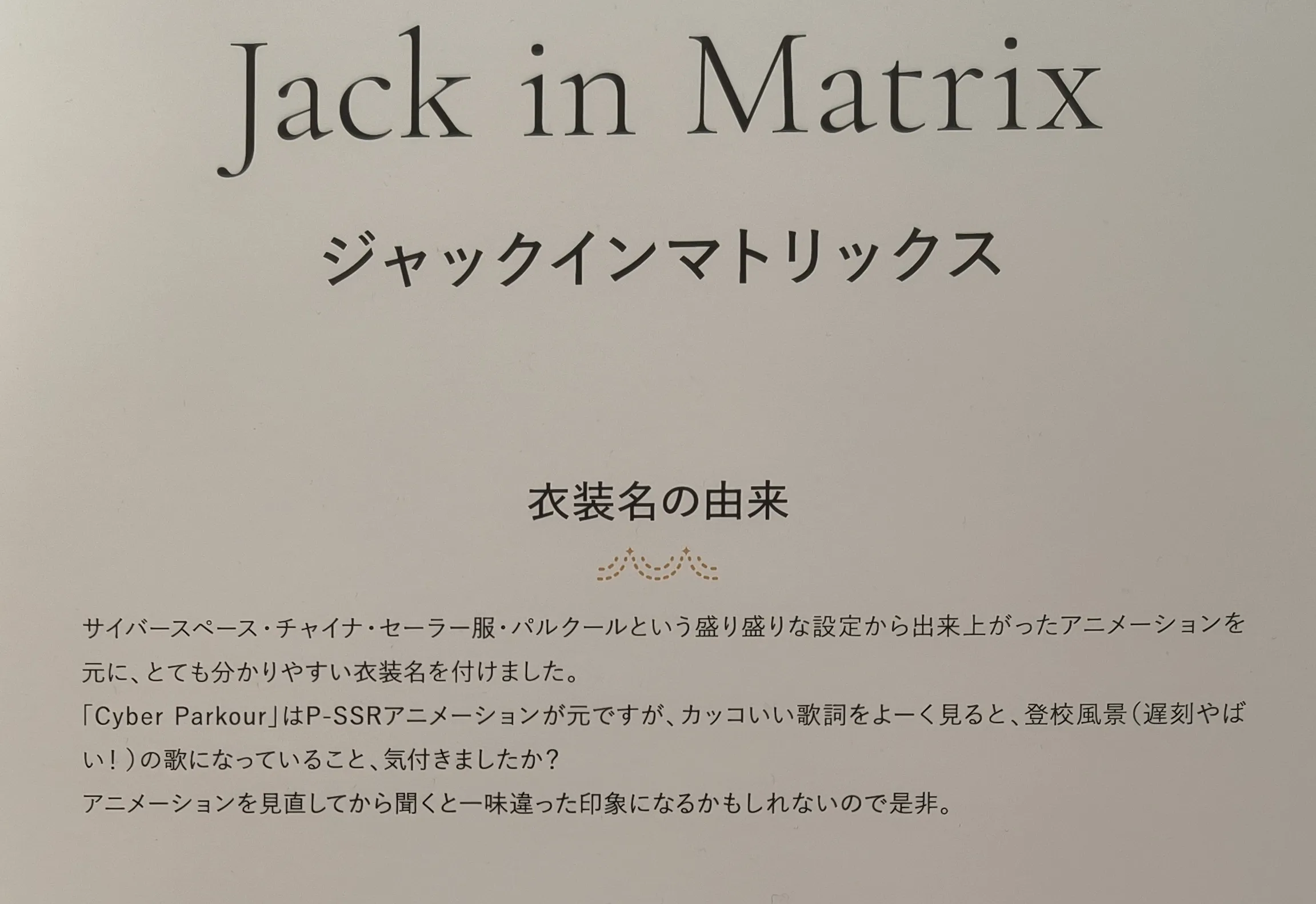 衣装のジャックインマトリックスも好き