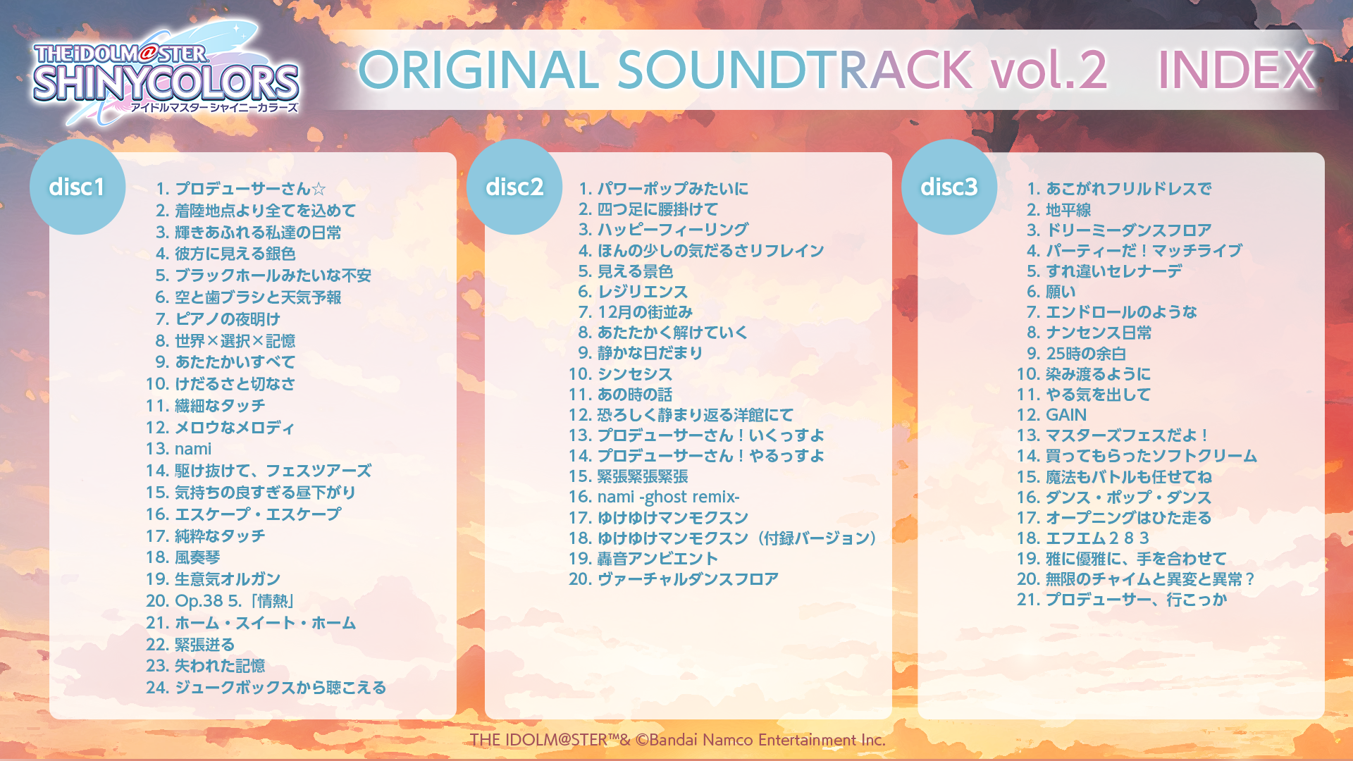 disk1の最初が甘奈でdisk3の最後が透の曲っぽいけど思い当たりがない