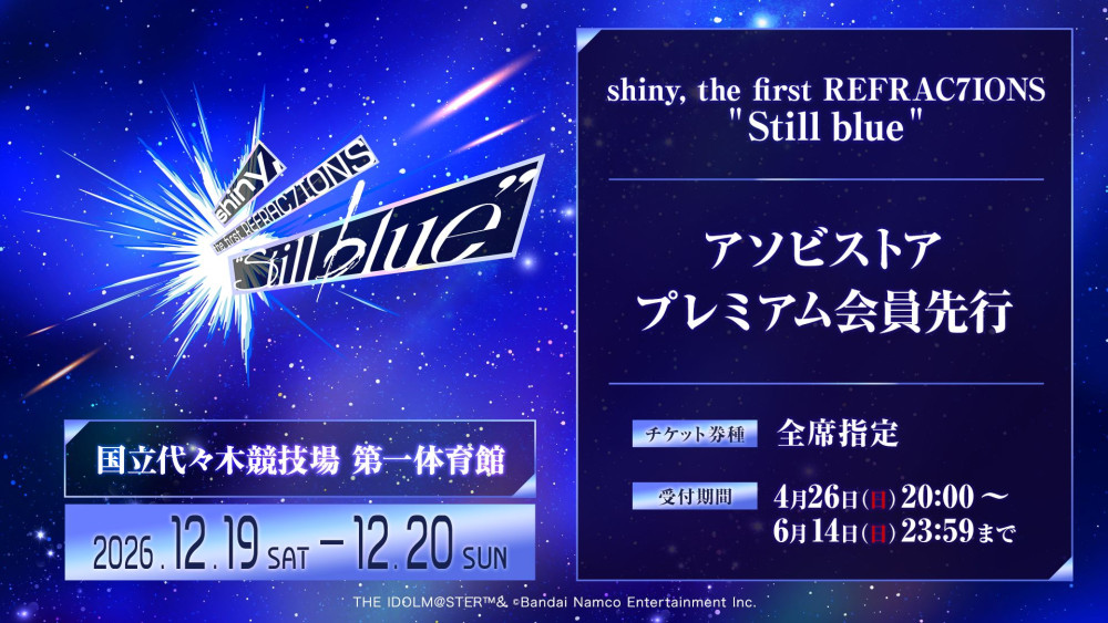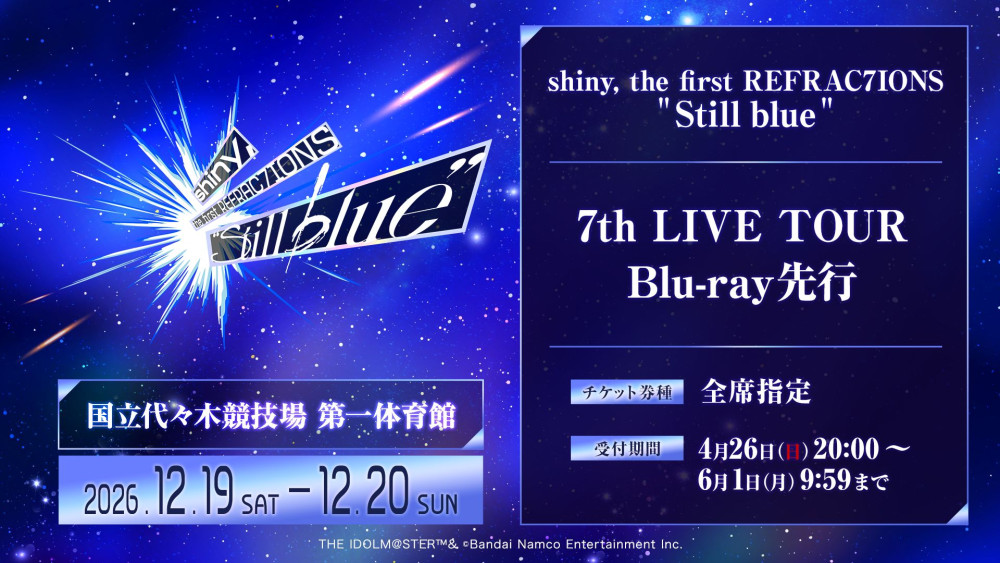【REFRAC7IONS】2026年12月国立代々木競技場 第一体育館にて「shiny, the first REFRAC7IONS ” Still blue “」開催決定!!本日より現地チケット最速先行がスタート! #シャニマス_リフラクションズライブ #シャニマス8th_day2 #シャニマス #シャイニーカラーズ #idolmaster https://t.co/iciXrkNw7P