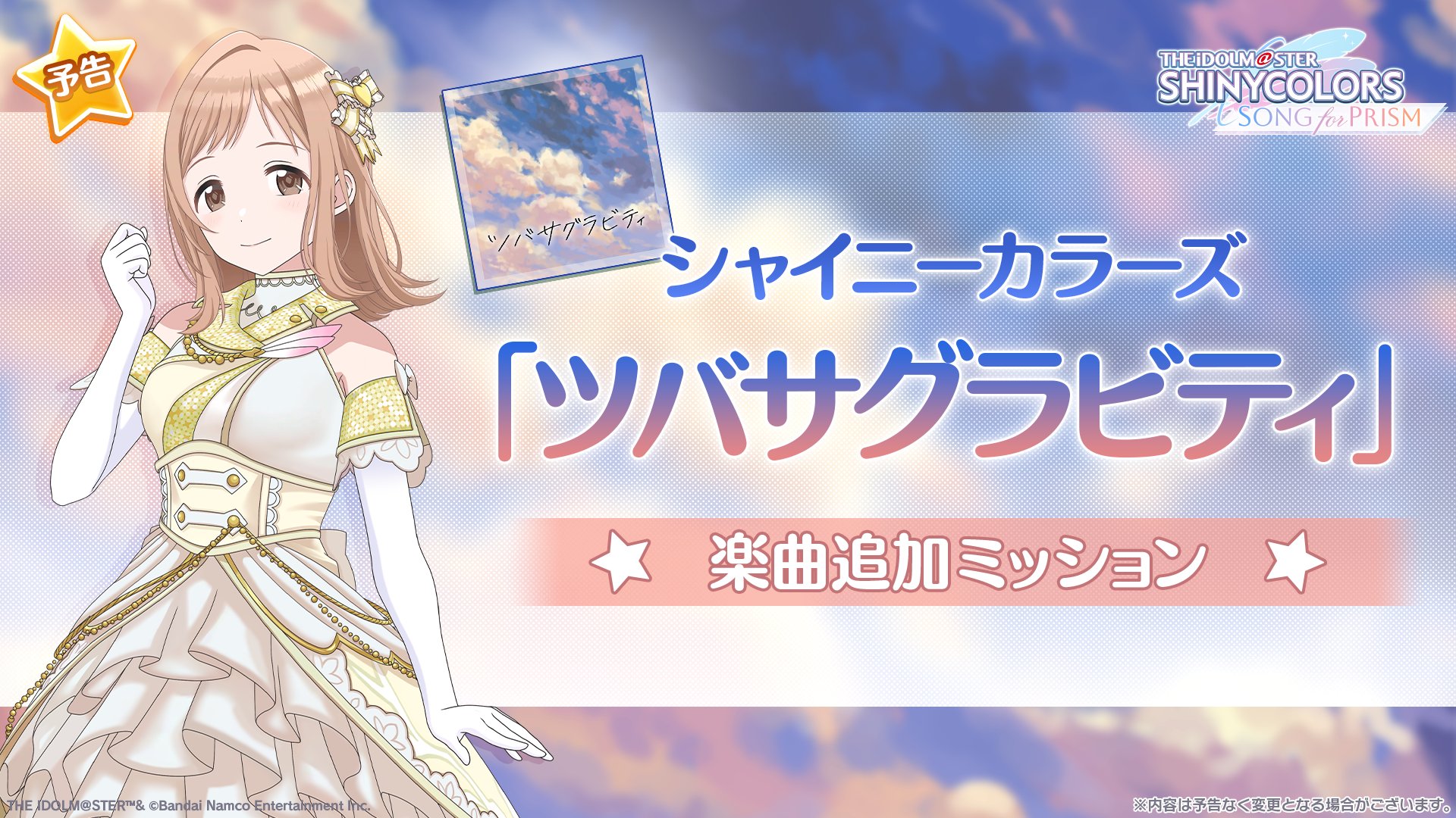 【シャニソン】「ツバサグラビティ」 ライブ楽曲に近日追加! 期間限定ミッションも開催!