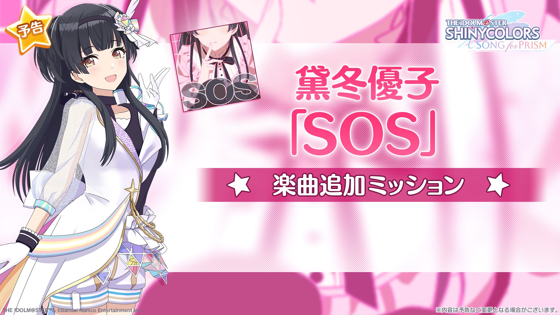 10日に配信された「異次元フェス アイドルマスター★♥ラブライブ!歌合戦」宣伝隊長就任式にて、「アイドルマスター」シリーズ宣伝隊長としてストレイライトの黛冬優子が就任したことが発表されました。