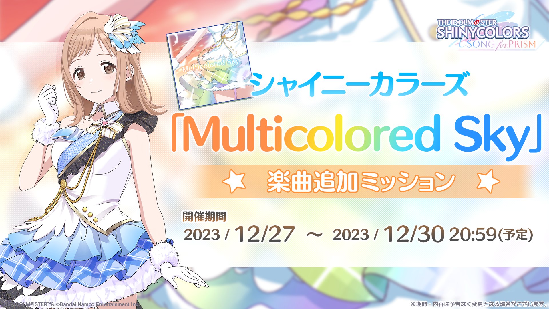 シャニソンに楽曲 「Multicolored Sky」が追加!合わせて楽曲追加ミッションも開催されます。