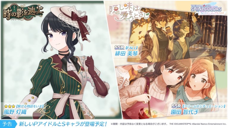 【シャニソン】★3灯織、SSR智代子&美琴が登場!Pアイドルガシャ「時の影を辿って」Sキャラガシャ「隠し味は愛をひとさじ」開催!