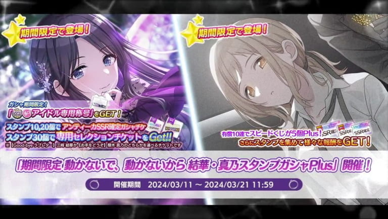 【シャニマス】「期間限定 動かないで、動かないから 結華・真乃スタンプガシャPlus」開催!