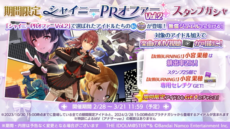 【シャニマス】「期間限定 シャイニーPRオファーVol.2スタンプガシャ」開催!