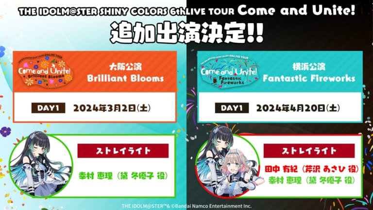 【シャニマス】6thLIVE TOUR大阪公演DAY1に幸村さん、横浜公演DAY1に幸村さん、田中さんの追加出演が決定!
