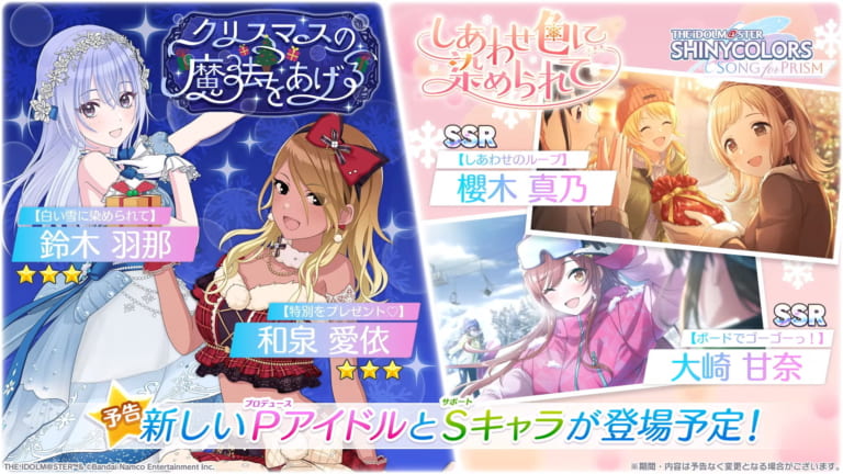 【シャニソン】★3愛依&羽那、SSR真乃&甘奈が登場!ピックアップPアイドルガシャ「クリスマスの魔法をあげる」ピックアップSキャラガシャ「しあわせ色に染められて」開催!