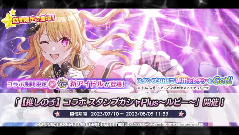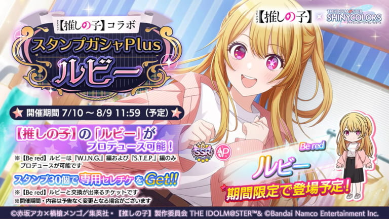 【シャニマス】「【推しの子】コラボ スタンプガシャPlus〜ルビー〜 」開催!