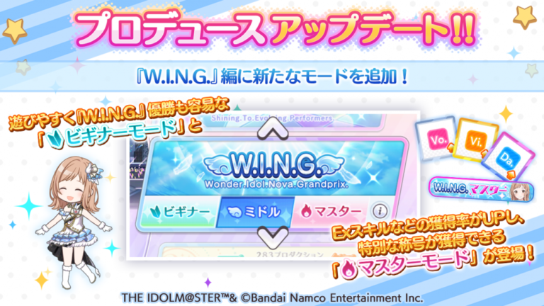 【シャニマス】プロデュースアップデートでWINGにビギナーモードとマスターモード追加!プロデュース時のUIもSTEP仕様に調整
