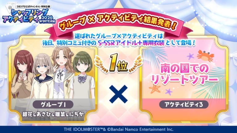 【シャニマス】シャッフリングアクティビティ2026WINTER編はグループIの南の国でのリゾートツアーに決定!……大丈夫なのか?