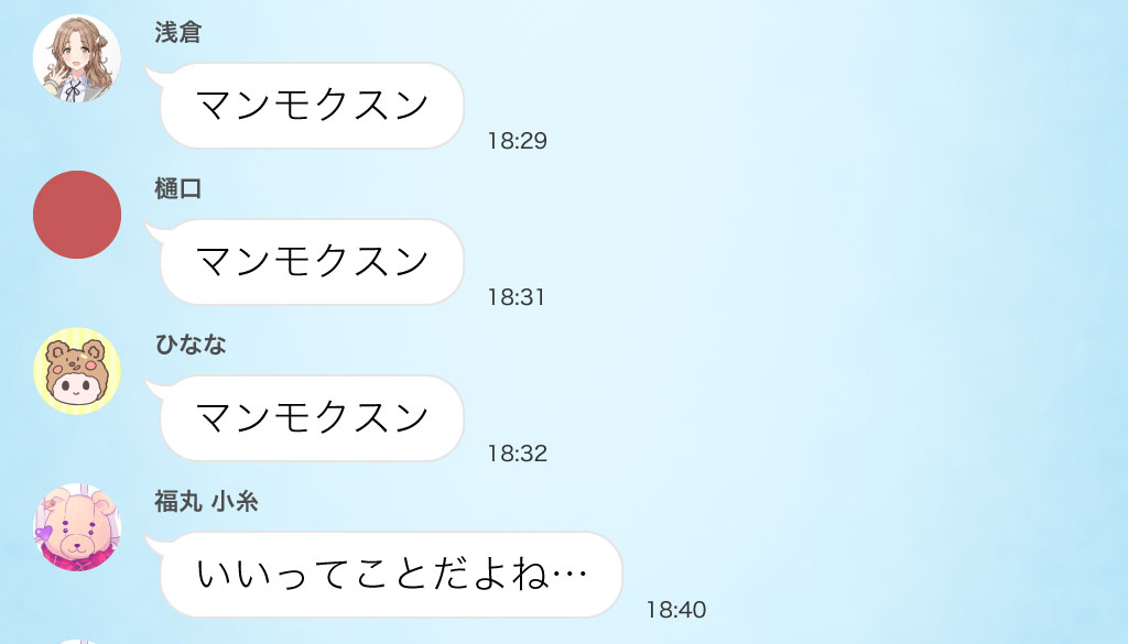 ユニットの記念写真をアイコンにしている愛依ちゃん等々…