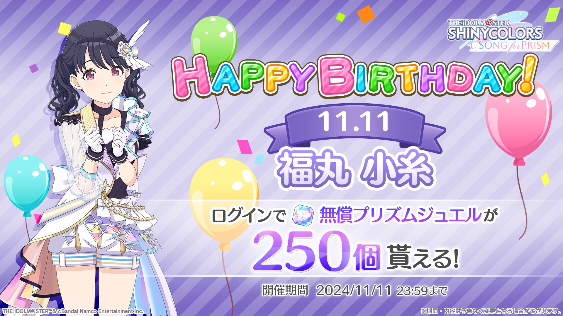ぜひログインして、お祝いしてあげてくださいね!#シャニソン pic.twitter.com/ALfmG7pu3a— シャニソン公式【好評配信中!】 (@imassc_prism) November 10, 2024
