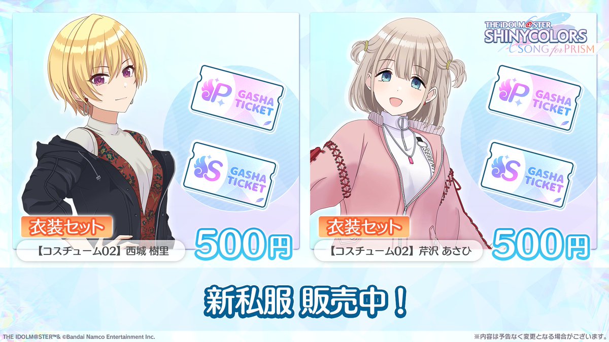 「アイドルマスター シャイニーカラーズ Song for Prism(シャニソン)」において、2024年1月19日より開催されるピックアップPアイドルガシャ「Jumping clear Sky」、およびピックアップSキャラガシャ「ぬくもりは手の中に」についてご紹介します。
