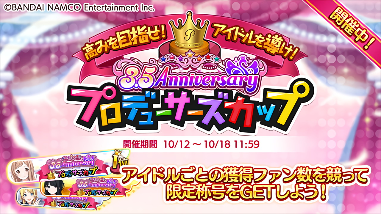 『アイドルマスター シャイニーカラーズ(シャニマス)』で開催されている4th Anniversary「プロデューサーズカップ」(Pカップ)の4月15日0時の時点での1位、10位(プラチナ称号)、100位(金称号)、1000位(銀称号)、3000位(銅称号)のボーダーをまとめています。