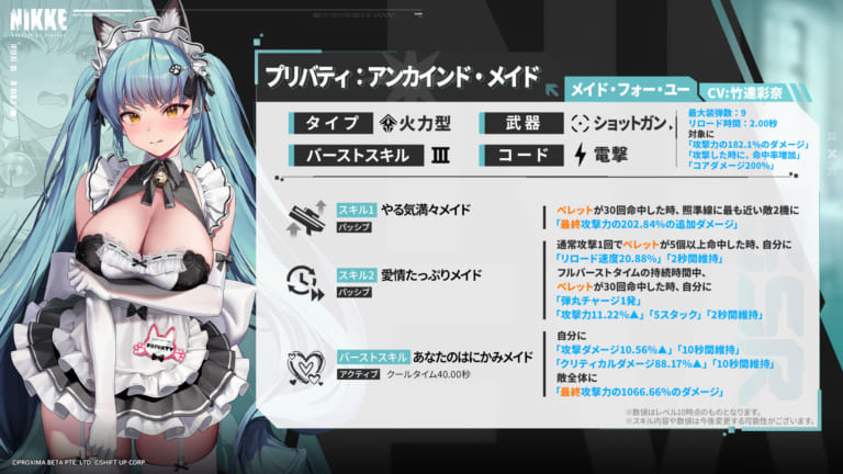 【NIKKE】メイドプリバティのスキル詳細が公開!ペレットが命中すればするほど強くなる高倍率全体バースト持ち