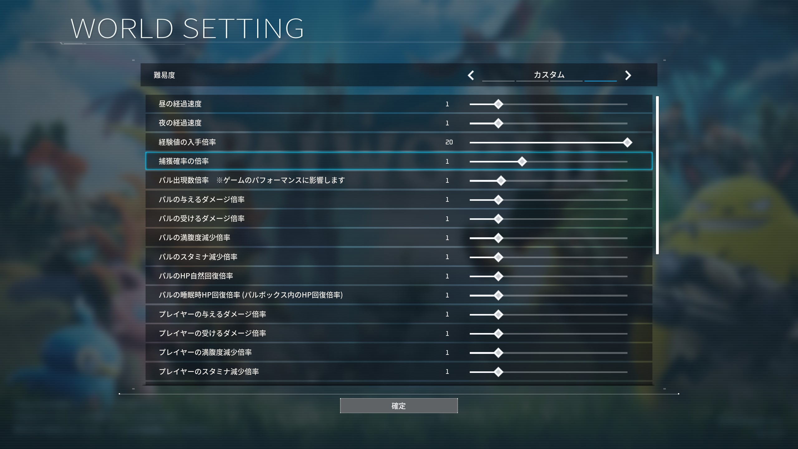 プレイしないか他人の鯖参加専門でやったほうがいい経験値とパル捕獲率は初期設定でかなりバランスいいぞ