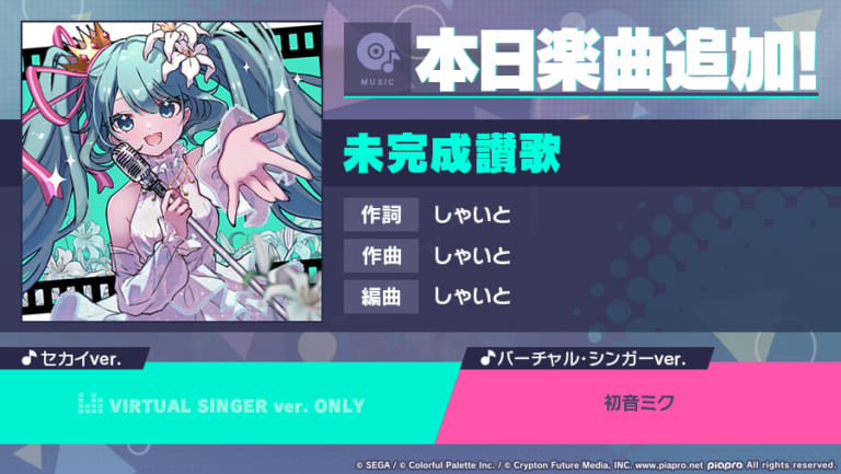 【プロセカ】楽曲「未完成讃歌」追加!難易度MASTERの楽曲レベルは31