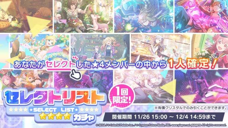 【プロセカ】選択した10人の★4メンバーの中から必ず1人が確定で出現!「セレクトリストガチャ」開催!
