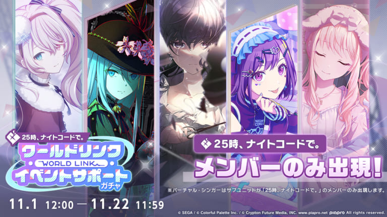 【プロセカ】ニーゴのメンバーのみが出現!「[25時、ナイトコードで。] ワールドリンクイベントサポートガチャ」開催!