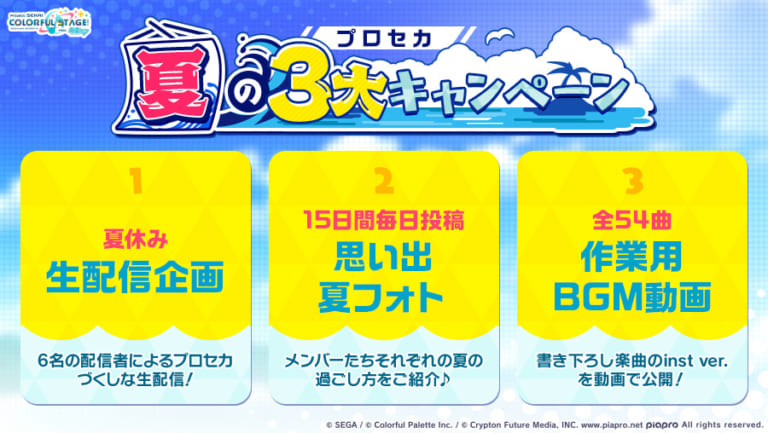 【プロセカ】「プロセカ夏の3大キャンペーン」開催決定!生配信企画に夏フォト投稿、作業用BGM動画が公開!