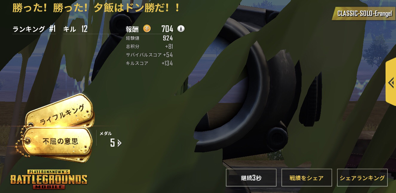 1回目でドン勝出来たわ